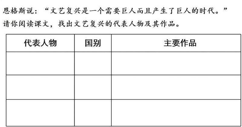 1.用表格归纳文艺复兴的代表人物及其主要成就。