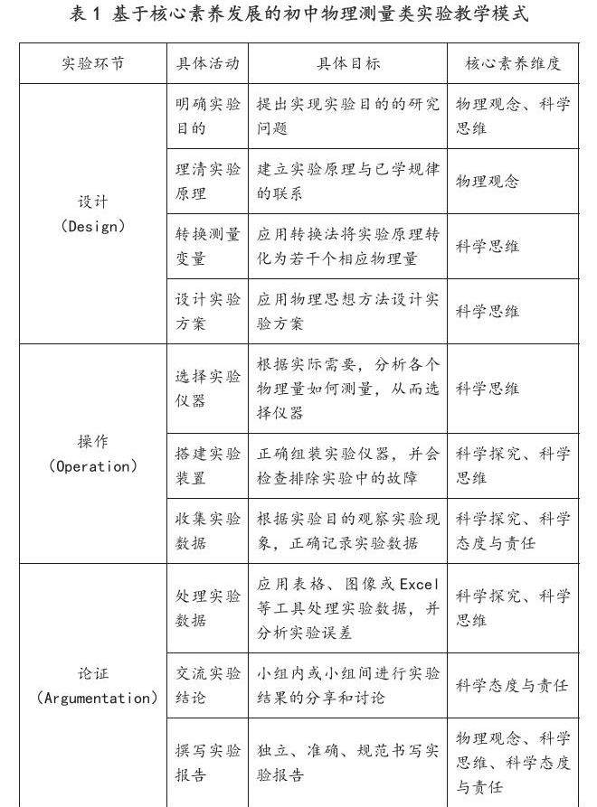 基于核心素养发展的初中物理测量类实验教学模式构建