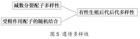 通过已建构的物理模型来说明配子染色体组合的多样性,再结合雌雄配子受精时的随机结合,阐明有性生殖后代的遗传多样性(见图5)。