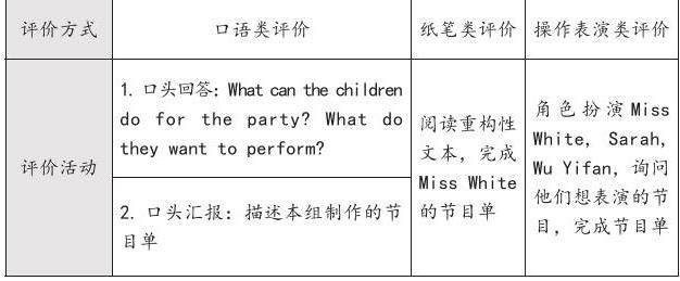 为丰富学生的学习体验,笔者巧用多维的活动形式,有机结合自主探究、小组合作等学习方式。在这节课中,学生首先观看教师制作的文本重构视频,整体感知任务背景及所用语言;接着通过自主阅读重构的文本,获取关键信息,小组合作完成Miss White为English party制作的节目单。在此过程中,笔者补充了所有已知、可知的活动类资源,拓展学生关于活动的认知;之后,引导学生两人合作进行角色体验和扮演活动,应用实践如何通过询问他人为English party表演的节目,完善Miss White的节目单;最后创设迁移情境:我们学校将举办2021年社团展演活动(制作一张节目单),让学生询问同学能做的事情及想表演的节目,小组合作完成社团展演活动的节目单。