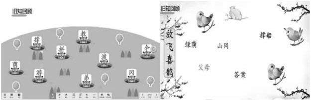 初探:复识生字,游戏巩固。通过生字游戏复习本课“二会字”。