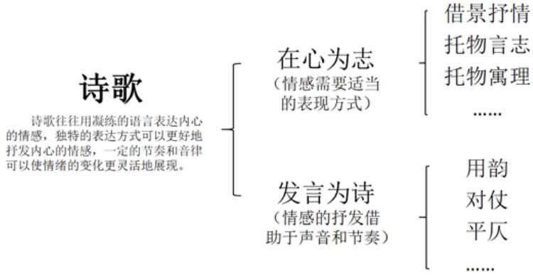 综合古今学者的论述,诗歌的大观念可以从两个分支去梳理。“在心为志”,因此情感需要适当的表现方式;“发言为诗”,情感的抒发要借助于声音和节奏。