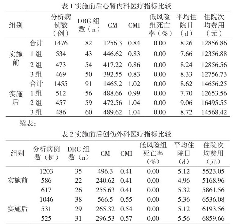 2.1实施前后心肾内科与创伤外科医疗指标比较