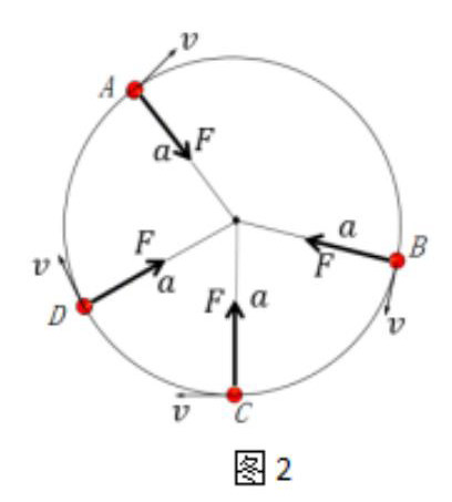 笔者在进行圆周运动向心力、向心加速度一节教学后,有一同学在做向心力定性判断时总要出错,在与他面对面进行交流时,发现他无法理解向心力是变力,加速度是变加速度,笔者反复强调“力、加速度都是矢量,是否变化要看大小还要看方向,只有大小和方向都不变才表示不变”。他回答说这个知识点是懂的,但还是不理解圆周运动向心力是变力,并画出如图2运动受力分析草图来说明,“老师你看,这A点向心力是指向圆心,B点向心力是指向圆心,C点向心力是指向圆心,D点向心力是指向圆心,向心力都是指向圆心,怎么变了呢?”这个时候我才恍然大悟,学生所说的向心力方向不变是“指向圆心”这四个字来看是不变。我问他,向心力虽然是指向圆心,但我们研究方向时是针对地面上的观察者来说的,向心力时而向上时而向下,时而向左时而向右(时而向东时而向西,时而向南时而向北),方向是不是变了?他一拍脑袋回答道“我明白了,这不是相对圆心来说的,那么向心加速度虽然是指向圆心,但也是时上时下、时左时右,方向也是变化着的,所以是变加速运动”。再如刚学完光的薄膜干涉及应用后,有的同学会发出灵魂考问:“暗条纹处为薄膜前后两个面反射的光相抵消,那么光能那里去了;照相机镜头前加上绿光增透膜以增强进入相机里的绿光,但是加上增透膜后不是多了两个反射层面,反射的光不是增多了吗,怎么会是进入的光多了,怎么叫增透呢;如果把教室窗户玻璃的厚度做到一个恰当厚度,这个厚度刚好是白光中名色光的半波长的整公倍数,从室外射入的光在玻璃两面反射,各色光恰好抵消成暗条纹,是不是阳光就照射不进教室了呢?”