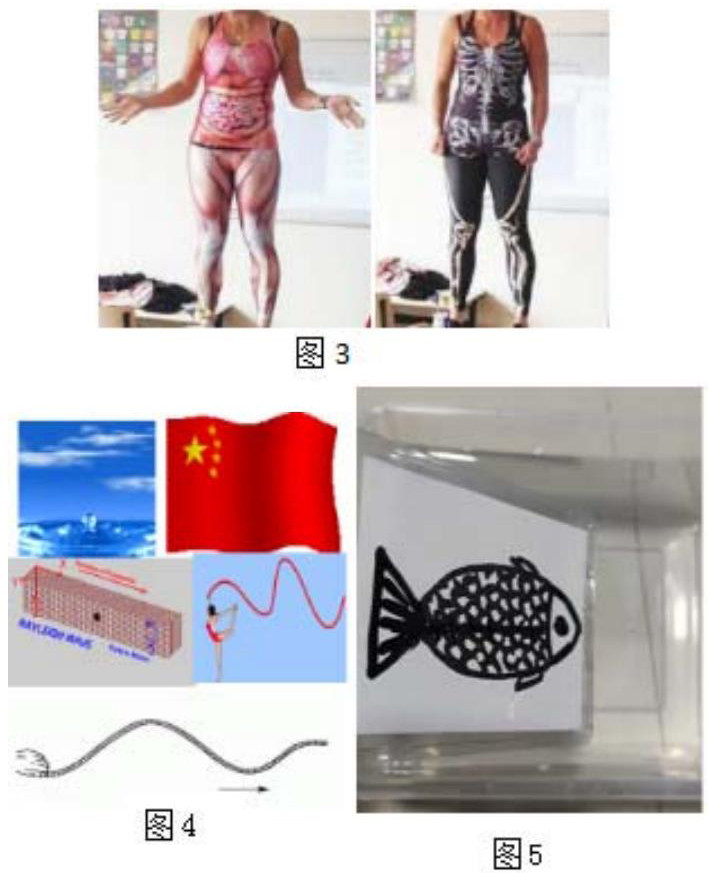 沉浸式课堂主张将课堂支配平权化,把学习的主动权还给学生,教师是课堂的协调者,通过教师的引导使学生投入到高效学习的状态中去。沉浸式课堂的主要特点是:学生要主动、教师善导动、问题串驱动、多元化互动。沉浸式课堂产生的条件有三个:一是学生的能力与学习目标相匹配。如果学生的能力层次较低,但是教学素材内容难度很大,学生面临很大的挑战,会产生焦虑不安而放弃。如果学生的能力层次很高但面临的学习挑战很低,他们会觉得无聊无效而放弃。二是设计体验过程时,要有非常明确的目标,比如球幕影院,它的设计就是给观众带来强烈震撼的视听冲击,并使其享受身临其境的高科技虚拟现实体验。三是对学生的交互行为要有即时的反馈,让学生感受到任何互动都有回应,并在他可接受范围时间内响应。如图3是一堂教学人体结构的生物课,教师穿上绘有人体各部位结构示意图的衣服,为学生创造了完美的沉浸式体验情境。下面浅谈沉浸式物理课堂的几点策略: