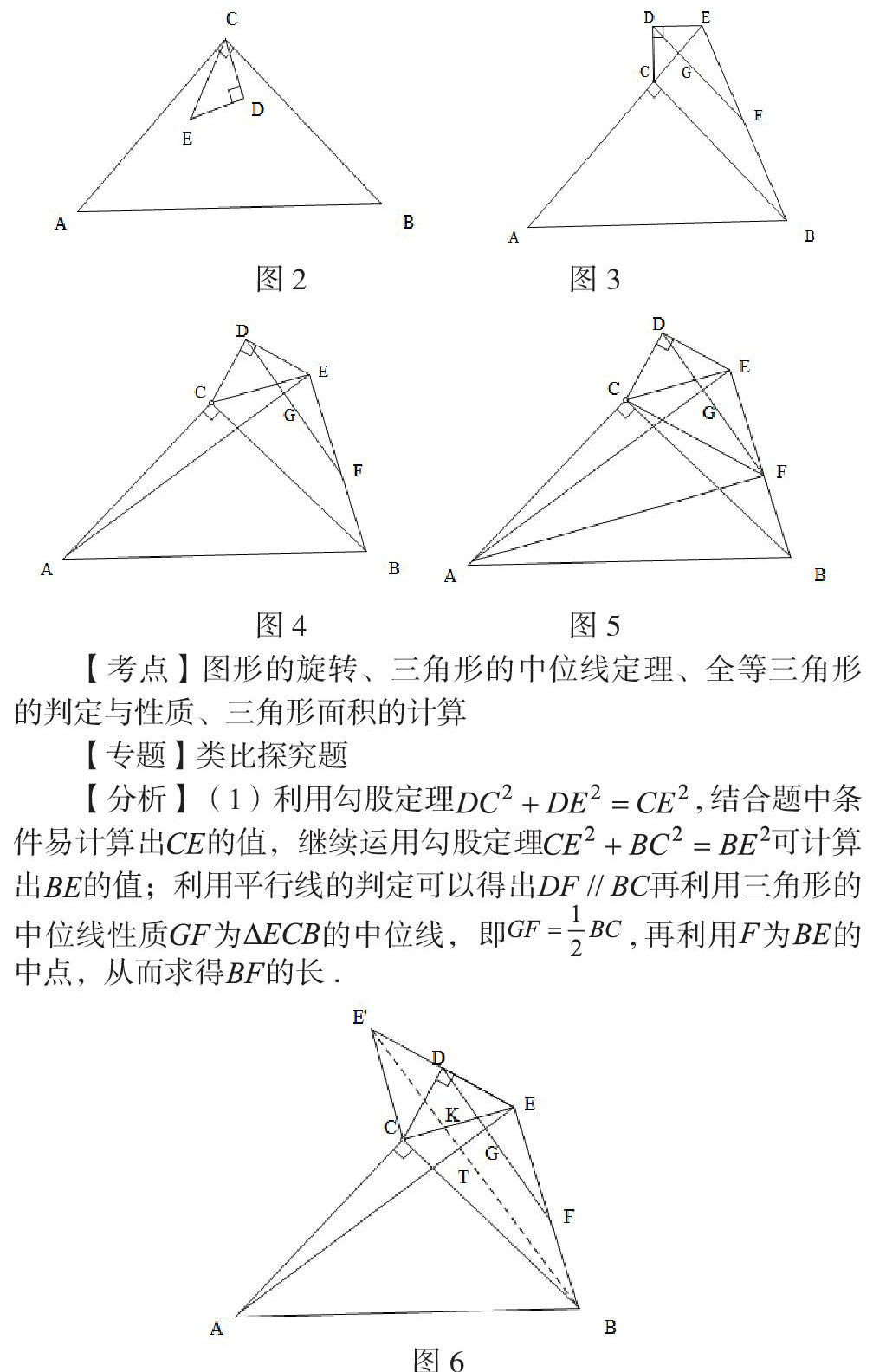 例3. 1如图2,△ABC与△EDC为等腰直角三角形,AC=BC=12,DE=DC=4,,将绕着点旋转.