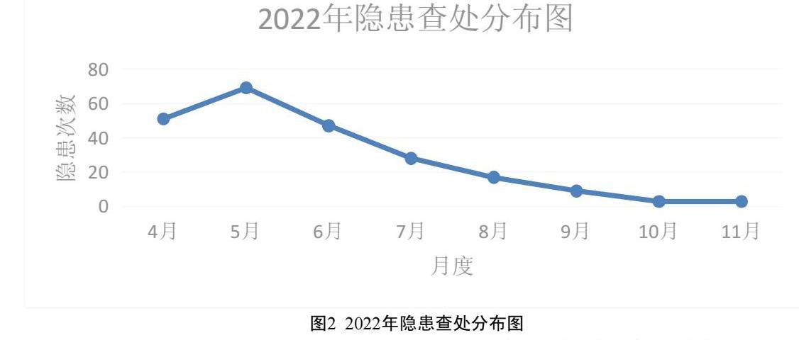 经过一年的推进实施,在全公司运行,建立并完善了“大安全”管理体系,安全管理实现“一主线、多支线”,横向到边,纵向到底的运行机制,安全风险治理能力得到了质的提升;通过顶层管理平台的搭建,新安全管理体系构建、安全管理制度体系的完善、各领域安全管理提升、融合党风廉政建设等措施的推动,构建和推动了“大安全”管理体系,实现了安全管理“全覆盖”;安全管理工作融入公司改革和运营的各个方面,各归口领域全面推动闭环管理,安全管理工作得到了面的提升,风险识别和应急处置能力得到质的提升, 安全隐患和违规事件稳步下降,逐步趋于平稳可控状态(如图2所示)。其次对法务风险、信息管理、质量管理、工艺风险事件进行强化监管,实现公司安全管理全覆盖。2022年度无人员、设备、建(构)筑物、交通运输、新增职业病和急性职业中毒、环境污染、火灾、失泄密事件,法律纠纷,疫情防控、信访维稳失控等事故发生,风险识别和管控能力明显提升;创造良好的经济效益,降低安全相关投入费用126.28万元;较2021年安全事故直接损失费用减少67.695万元,降低其他安全管控费用197.62万元,共计降低费用391.6万元。