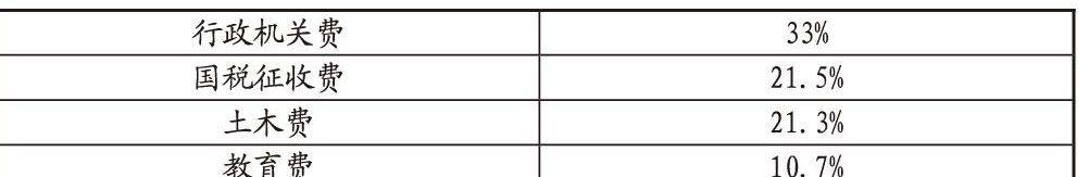 明治十一年(1878)7月在政治上颁布《郡区町村编织法》《地方税规则》《府县会规则》三项地方行政法。《郡区町村编织法》是废除废藩置县后地方上设置的大区小区制,改成郡-区-町-村四级行政区划。原先区町村的地位,拥有处理地方财产的独立自主权和独立团体性地位,大区小区的首长——区长和户长被看成“人民的代表”的角色。而现在,町村的最高长官户长仍由民众公选。但在区町村之上设置郡,和府、县一样其首长由官方选任,赋予监督町村的广泛权力,三级官任首长的行政机构,加强了政府对地方基层的控制和监视。法案虽然标榜尊重传统的村落秩序和“固有习惯”,但在具体操作上却借民众对首长有自发性服从的传统,行中央权威向地方渗透以进一步加强中央集权之实。《地方税规则》中把原来应由国库负担的项目(例如警察费,河港、道路、堤防、桥梁费,郡区厅舍建设费等)划归府县财政负担了,称为国政委任事务费。这笔税款会占到多大比重,参见下表: