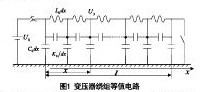 在冲击电压作用的波前部分等值频率较高,容抗比感抗小得多,故等值电路只包含C0、K0的电容链,即冲击波作用起始阶段由C0、K0决定电位的起始分布;而在冲击波尾部分,等值频率下降,L0相当于短路,C0、K0相当于开路,等值电路可视为一直流电阻,即稳态阶段由绕组直流电阻决定其稳态电压分布;由于电感和电容之间能量的轉换,使起始阶段向稳态阶段过渡时存在振荡过程。