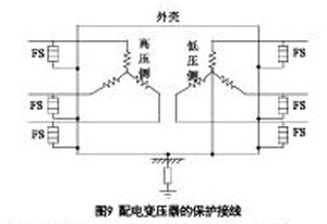 避雷器应当尽可能靠近变压器装设,其接地线应与变压器的金属外壳以及低压侧中性点共同接地,并减小接地线的长度,以减小电压降。