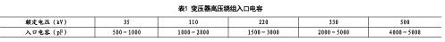 但在多雷区单路进线的中性点非直接接地的35~110kV变电站,宜在中性点加装避雷器保护。装有消弧线圈的变压器且有单路进线的可能性时,也应在中性点上加装避雷器,并且后者在非雷雨季节也不许退出运行,以限制操作过电压。所有这些避雷器的额定电压都可按线电压选择,至少不应低于相电压,具体按表2[6]选用。