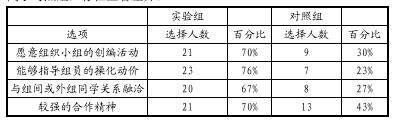 实验后两组学生组织合作能力的对比结果(见表4)