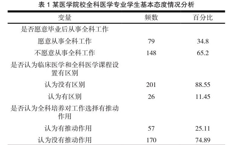1.某医学院校全科医学专业学生问卷调查反映的主要情况