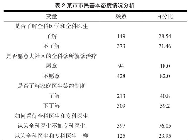 本次调查采用了随机抽样调查的方法,随机抽取某医学院校全科医学专业学生260人和江苏省某市市民540人作为调查对象进行问卷调查,共发放问卷800份,共回收749份,其中学生问卷227份,市民问卷522份,问卷有效率达到9 3.625%。