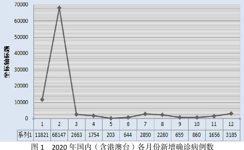 图1 2020年国内(含港澳台)各月份新增确诊病例数