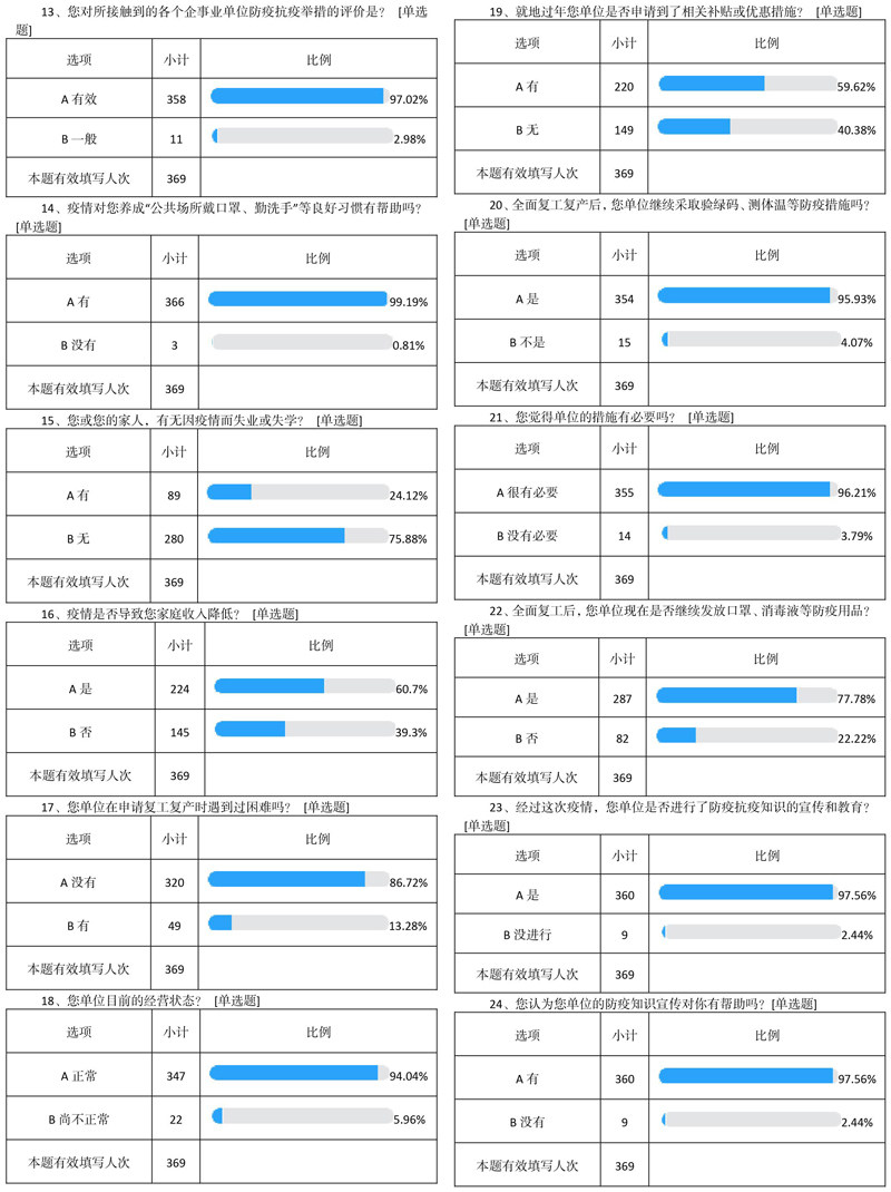 【前言】本文属于回顾性调查报告,旨在总结发生在2019年末新冠疫情发生、发展和后疫情期间,我国基层单位在党中央政策和法规的指引下,如何因地制宜根据自身的实际情况,采取切实可行的防疫抗疫措施,以及后期复工复产的有效做法。本调查报告以浙江基层实际做法为视角,通过该经济社会发展和医疗资源中上、疫情危害一般的沿海省份的防疫抗疫措施和做法,以点带面反映全国抗疫成功的必然性。经过这两年人与疫情的殊死抗争,中国最广大人民的生命健康得以持续保障,企业得以继续生存发展。本报告的调查方法,一是采用实地调研法。通过走访受调查的单位,与单位负责人和相关工作人员交谈,从而获取第一手资料和数据;二是网络问卷法,通过制作微信小程序并发放问卷,收集了解疫情期间人们对此次突发新冠疫情的初识、认知、应对、抗击的成长全过程;通过对中外情况对比以及国内五家基层单位措施的阐述,反映和分析国内防疫抗疫成功的必然性。帮助国人深刻领会我国防疫抗疫的先进经验和必胜法宝。