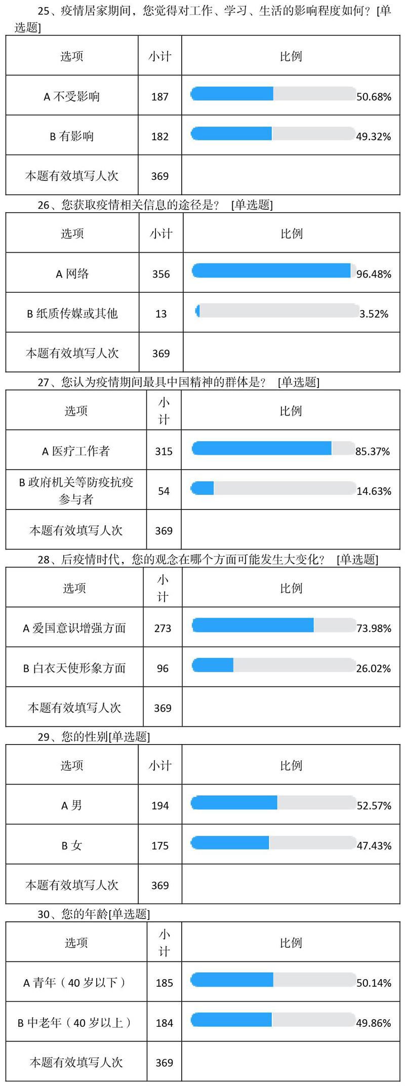 为了解普通百姓对于我国防疫抗疫的心声,笔者自拟题目30道,通过APP小程序发放网络获取答案。网民答题踊跃,实际收到答案 份,有效地为本次调查统计提供了数据支持。网民接受调查和答题踊跃,共有369人次参与本次活动,答题有效性和真实性颇高。