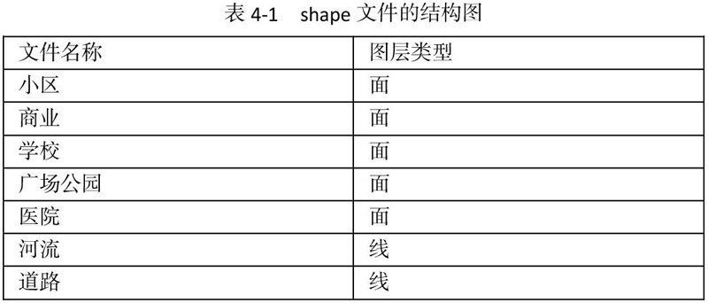 本系统的数据分为电子地图数据和元素属性数据,所有操作都是以这些原始数据为基础的,由于智能选房系统需要区分不同的信息,所以这些都需要用属性表来说明。