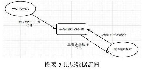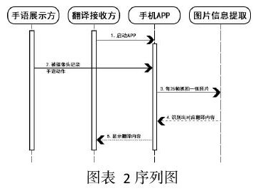 通过手语翻译接收方使用手机摄像头对准手语展示方,记录下手语动作,手机将实时翻译出成文字与语音。详见图表二。