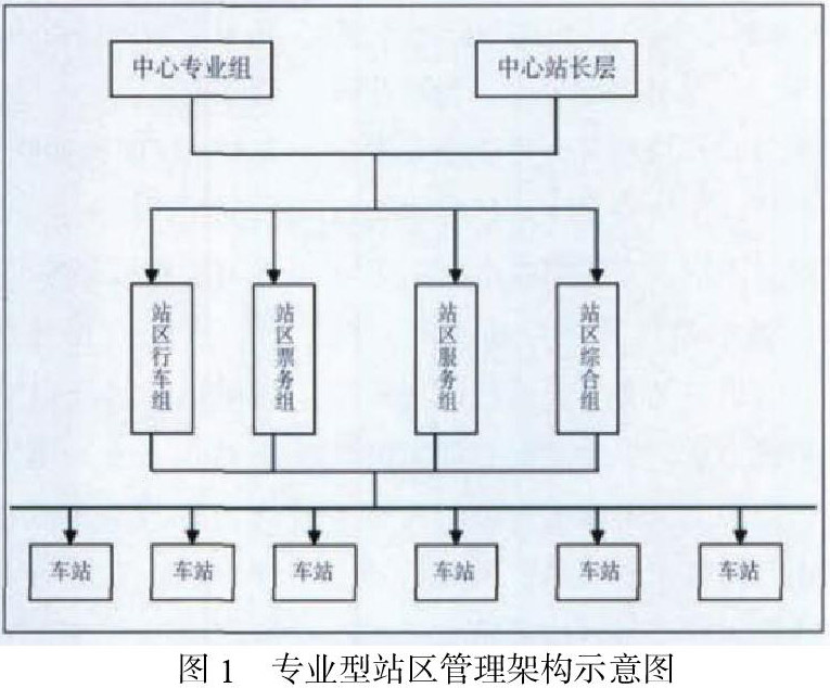 在站区管理中,“经理管理模式”得到了广泛应用,逐级负责的多层管理予以了有效落实,也就是先站务中心管理层,然后站区管理层,最后车站管理层这一流程。一般来说,普通型架构与专业型架构是站区管理架构的重要构成内容,首先,针对于前者,在其管理模式中,主要包括一个站长、二个分管,对其特点进行分析,管理模式的单一性特点显著,对站长的要求也比较严格。而对于后者,每个中心级专业组需要对站区各个专业组予以直接管理,该专业型架构在网络化运营中具有较高的适用价值,可以不断提高安全生产执行效率。专业型站区管理架构示意图如图1所示: