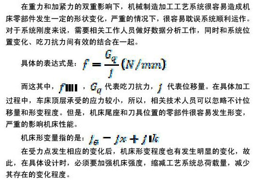 在重力和加紧力的双重影响下,机械制造加工工艺系统很容易造成机床零部件发生一定的形状变化,严重的情况下,很容易耽误系统顺利运作。对于系统刚度来说,需要相关工作人员做好数据分析工作,同时和系统位置变化、吃刀抗力间有效的结合在一起。