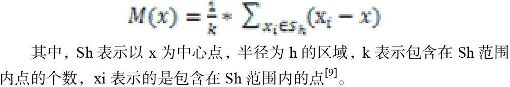 其中,Sh表示以x为中心点,半径为h的区域,k表示包含在Sh范围内点的个数,xi表示的是包含在Sh范围内的点[9]。