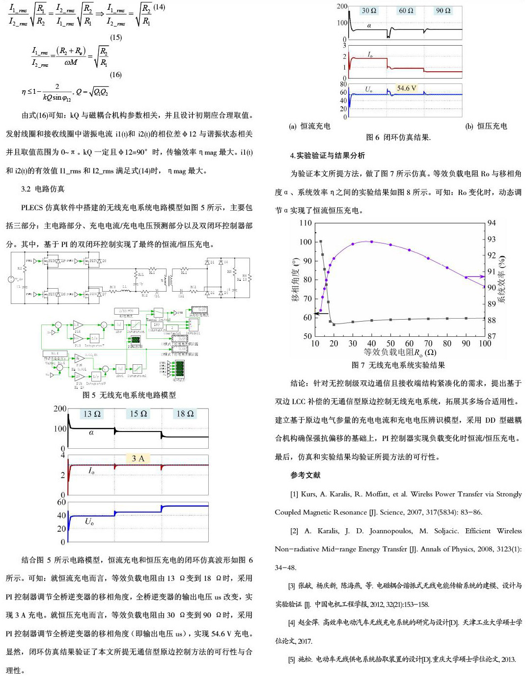 基于双边LCC补偿的无通信型原边控制无线充电系统研究