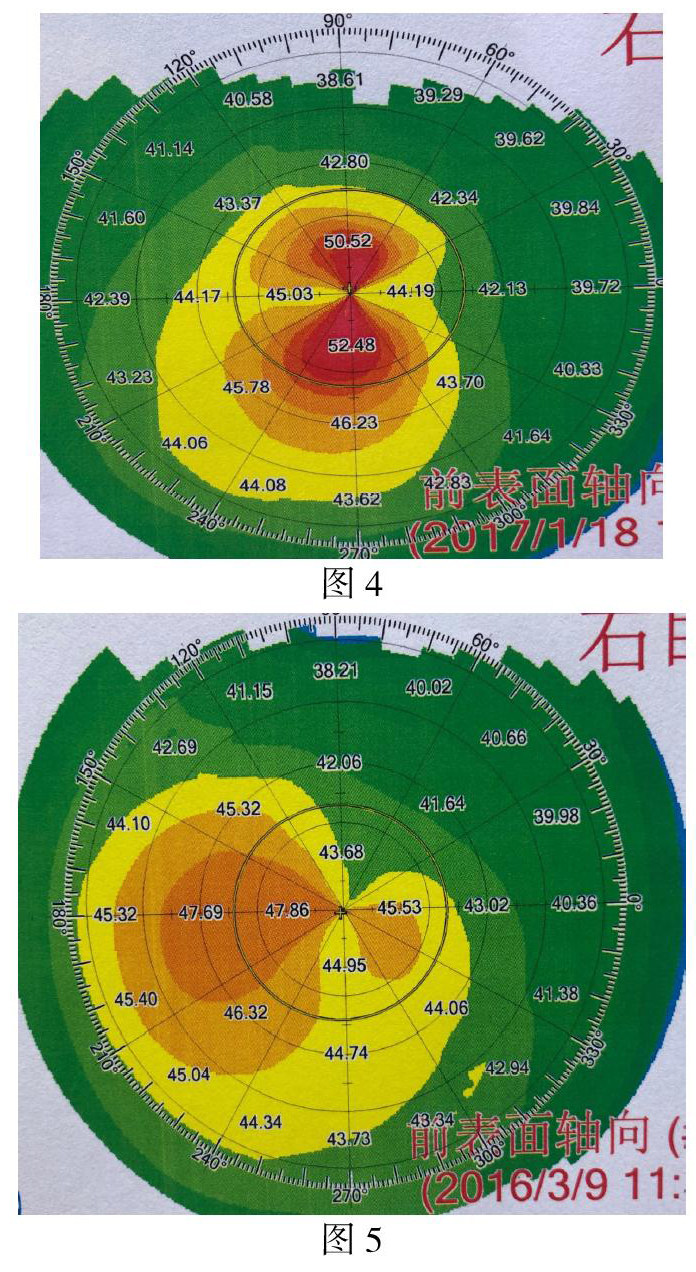 3)角膜曲率单眼呈现上下不对称