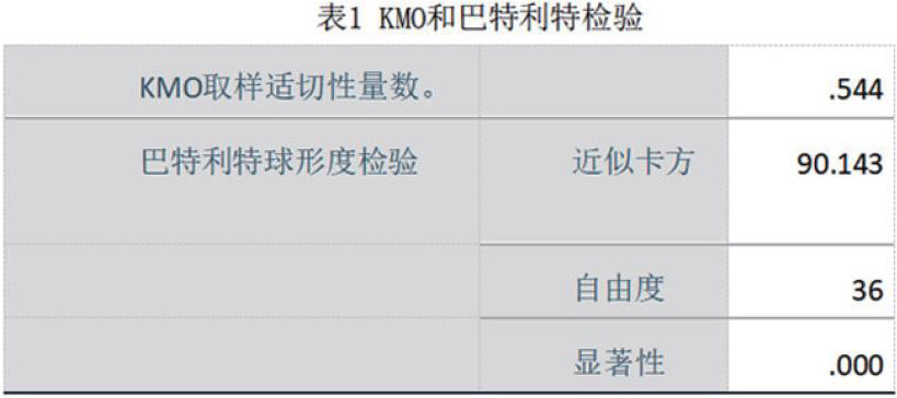 在进行分析前,本文进行了KMO和巴特利特球度检验,见表1所示。