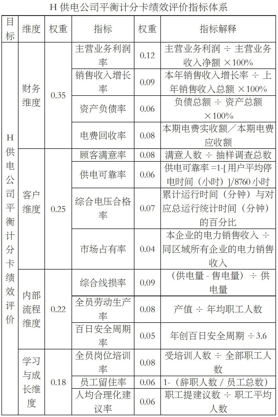基于平衡计分卡的H供电公司绩效评价体系探究