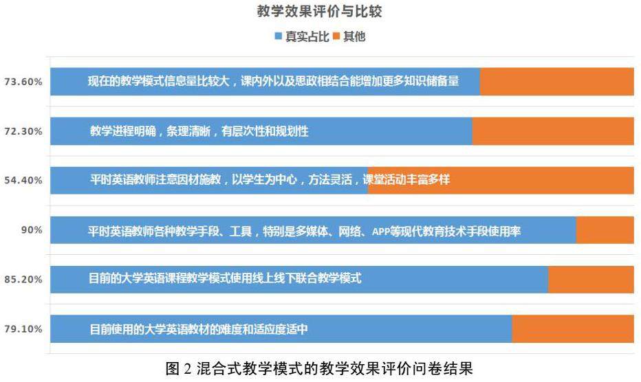 本课教师在信息化手段帮助下解决了传统教学中教师难指导、学生难练习、互动时间少、学习难留痕的困难。通过课前线上预习、课中指导讨论、课后测验巩固,强化了语言技巧训练,调动了学生学习热情。根据问卷反馈,学生普遍认可目前开展的线上线下混合式的教学方法,认为教学信息量大,能增加课内外知识储备。