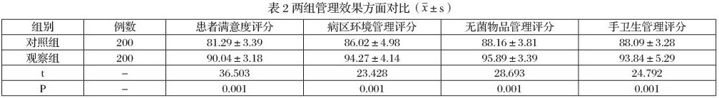 观察组整体管理效果更佳,呈P<0.05,体现在患者满意度(以我院自拟患者满意度问卷为判定标准)、院感防控管理质量(对医护人员展开多方面培训以此明确管理质量)提升方面,详见表2: