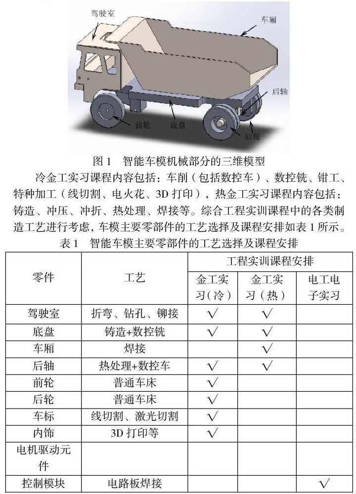 我校自2011年入选“卓越计划”高校以来,不断探索贴近工程实际的实践教学模式。智能卡车模型贴近生活实际,零部件种类多样,加工制造工艺难度适中,基于卡车车模零部件加工制造与装配的多学科融合的工程实训教学已开展多年。