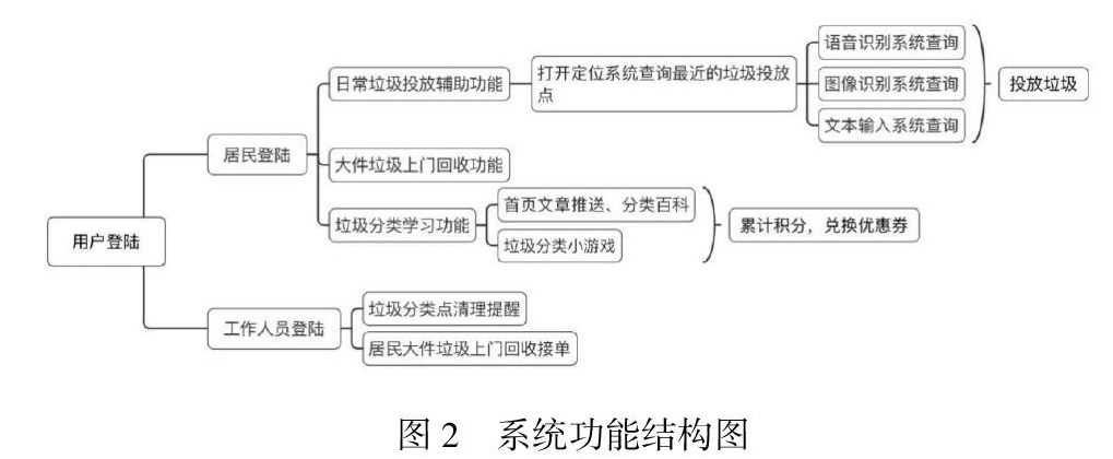 语音识别查询主要实现的功能主要是两大模块:首先是查询功能模块,加入语音识别用以代替文本输入,搜索过程同文本输入;其次是娱乐功能模块,该APP设计过程中包括了一款APP助手的机器人形象,主要目的是通过娱乐方式让垃圾分类意识深入人心,此外,还使可以打造垃圾分类智能客服以保障APP运行,及时接受用户反馈信息。