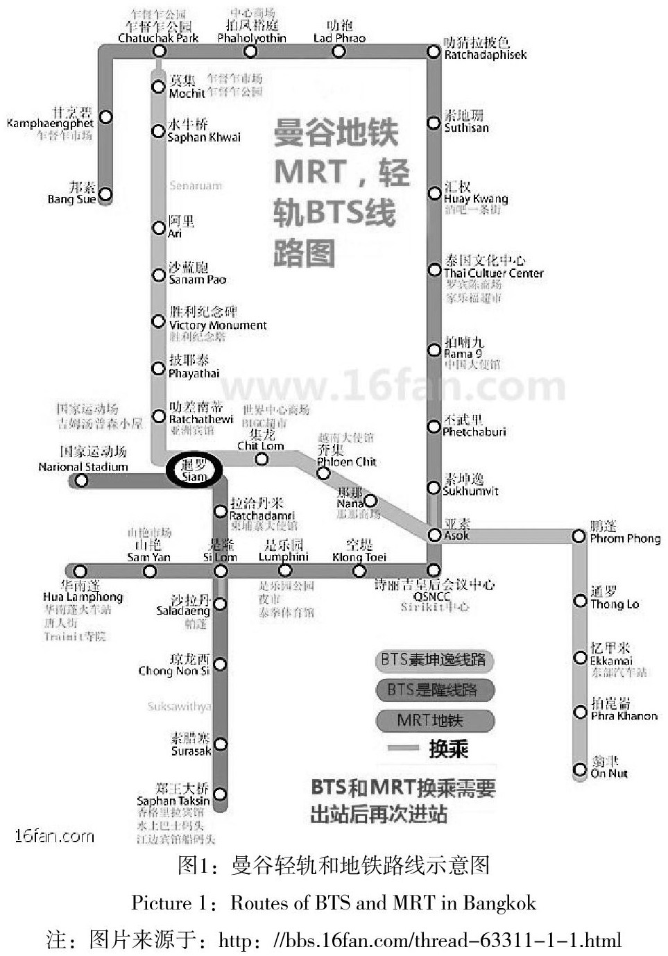 曼谷有轻轨BTS和地铁MRT两种新型旅游交通工具(如图1)。运营时间都是06:00—24:00。