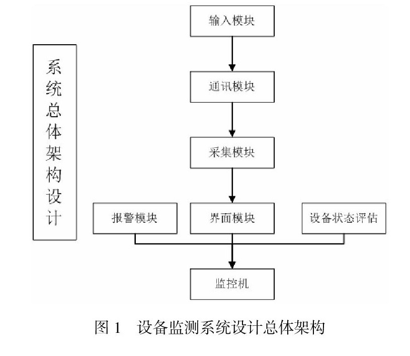 (1)、基于电流的设备监测系统结构设计如图1所示,包括:输入模块、通讯模块、采集模块、设备状态评估、报警模块以及包含界面显示的监控机,并要求监测系统遵循以下原则: