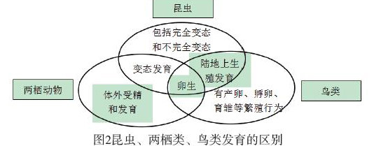 再如,学习“动物的发育”这一节时,指导学生构建出的韦恩图: