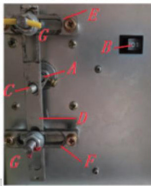 还有一些书本中理论可以通过自制器材演示出来。在苏科版3-4机械振动这一章书后的课外阅读栏目中阐述了圆周运动与简谐运动之间的关系, 做简谐运动的物体离开平衡位置的位移x与时间的关系可用正弦函数Asin(ωt+φ)来表示,函数中ω表示匀速圆周运动的角速度,我就设想自制出一台仪器能够圆周运动和简谐运动之间的关系。如图所示,A是可变速电动机的中心轴, B为开关, C 是长度为1.5.厘米的钢片,它一端套在A上,另外一端与连杆D相连,这样保证电机转动时,C的一端做半径为1.5厘米的匀速圆周运动。 竖直方向连杆D和水平连杆E和F的作用是让两个滑动栓G只能在水平方向运动。接通电源后,改变电动机转速实际就改变了振动的频率,滑动栓G连接适当的绳子和线圈,还能演示横波和纵波,充当稳定波源。