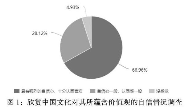 这种国家认同从文化自信的角度上看,指国民的文化价值认知以及对外文化传播、交流时在优劣比较中的充分自信。②也就是说,在国际层面上,对本国文化的高度认同和肯定,这种认同不仅仅是体现在对自身文化的自信方面,还体现在,面对西方各国文化的冲击,相信本国文化可以从中进行辨别“取其精华,弃其糟粕”,对本国文化包容度和学习能力的自信。