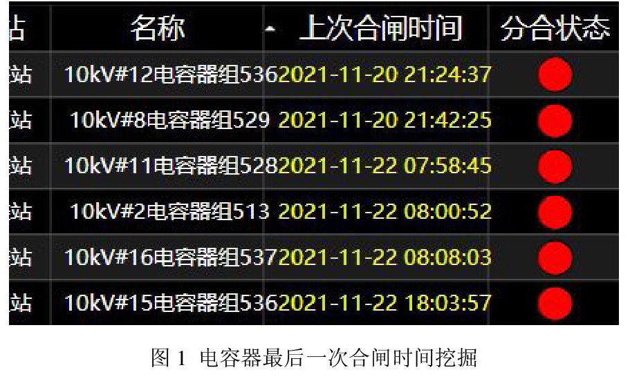 本文在上述AVC策略基础上,挖掘电容器最后一次合闸时间,如图1所示,同当前时刻形成差值,作为电容器运行轮换的控制变量,再综合分析母线电压和功率因数,实现电容器的自动投切或轮换。