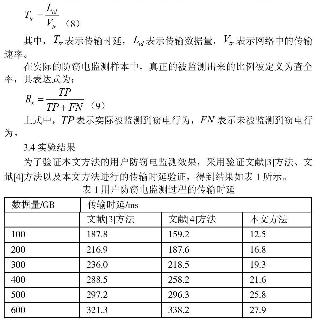 为了验证本文方法的用户防窃电监测效果,采用验证文献[3]方法、文献[4]方法以及本文方法进行的传输时延验证,得到结果如表1所示。
