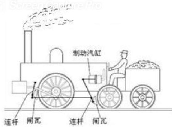 在1872年,装配有蒸汽制动装置的蒸汽机在日本的第一条铁路上开始运营。当时,只有蒸汽机车才安装有蒸汽制动装置,蒸汽制动装置如图2-1所示,后来日本又开发出真空阀,由蒸汽喷射器提供动力,从而通过利用机车之间气压和真空的差异性来制动。