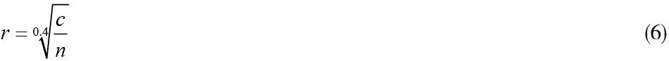 式中r为空冷管束的使用时间; c为r时刻检测到的最大腐蚀深度,mm;采用IRIS检测到的抽取空冷器管束的最大腐蚀深度,利用Gumbel 分布获得空冷管束最大腐蚀深度,带入式(6)可得出n。腐蚀穿孔,则表示最大腐蚀深度达到原始壁厚,将换热管束原始壁厚带入c,则可以计算出腐蚀穿孔的时间r,此时的r就是换热管束的使用寿命。