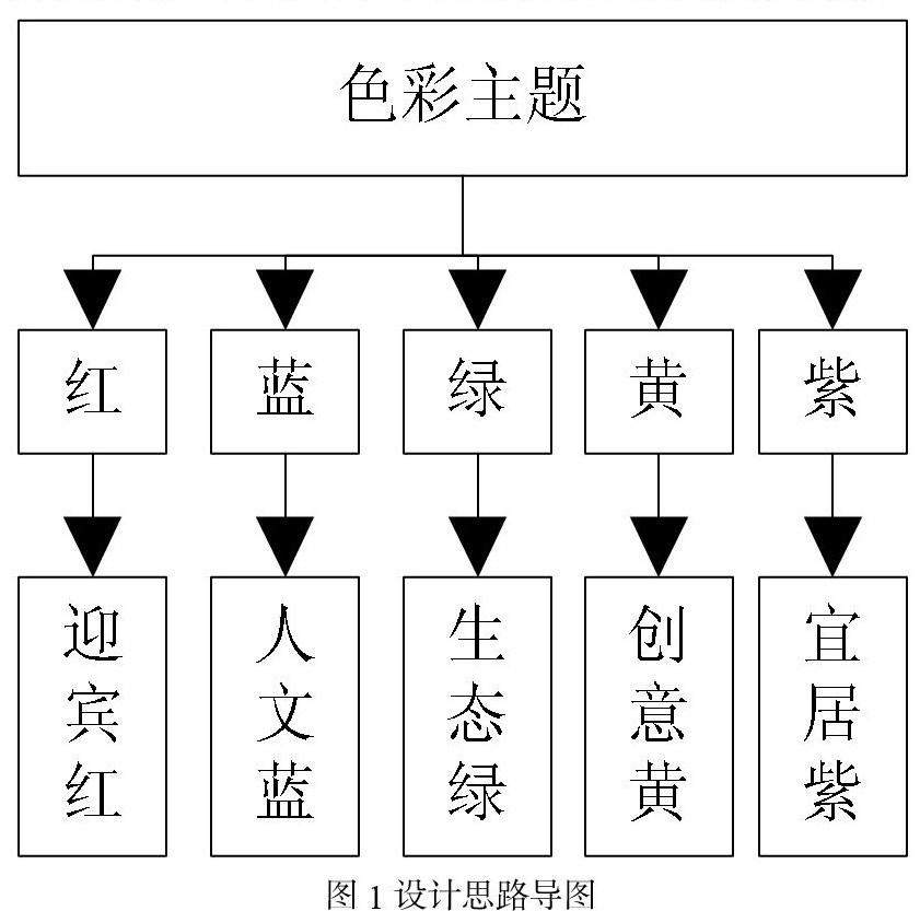 城市道路绿化风景园林设计优化目的是以自然山水风光为依托,充分考虑周边环境,融入新时期城市发展风貌,以色彩为表现载体,达到充满地域特色与人文气质的城市生态格局,设计思路导图如图1所示。