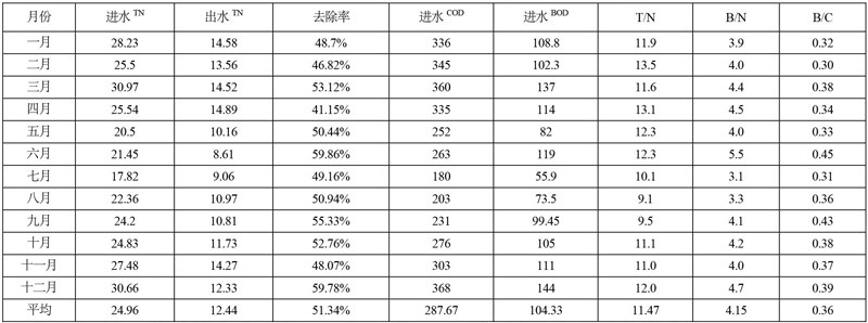 全年的碳氮比为11.47 BOD/COD为4.15,全年出水总氮平均12.44mg/l