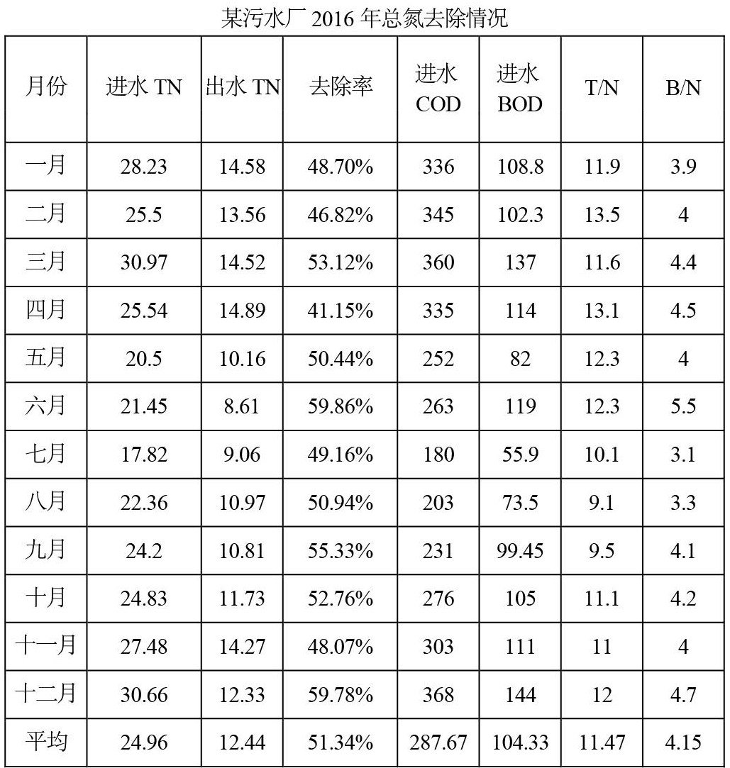 某污水厂2016年脱氮系统数据汇总