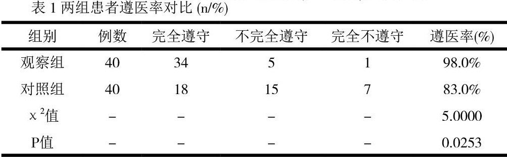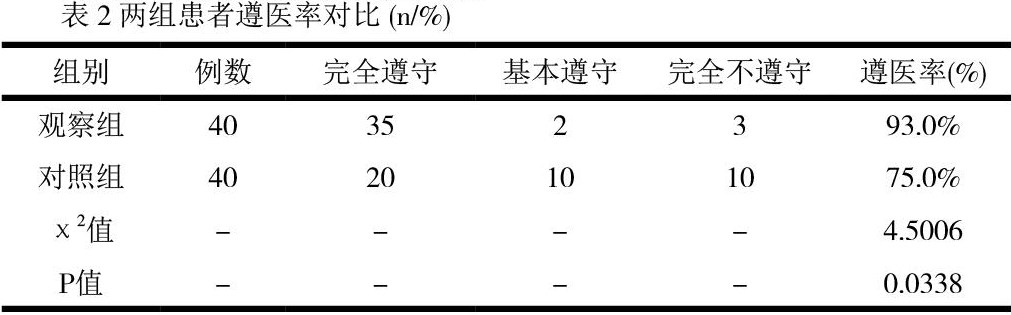 两组患者之间的遵医行为展开对比,差异有意义(P<0.05),(如表2所示)。