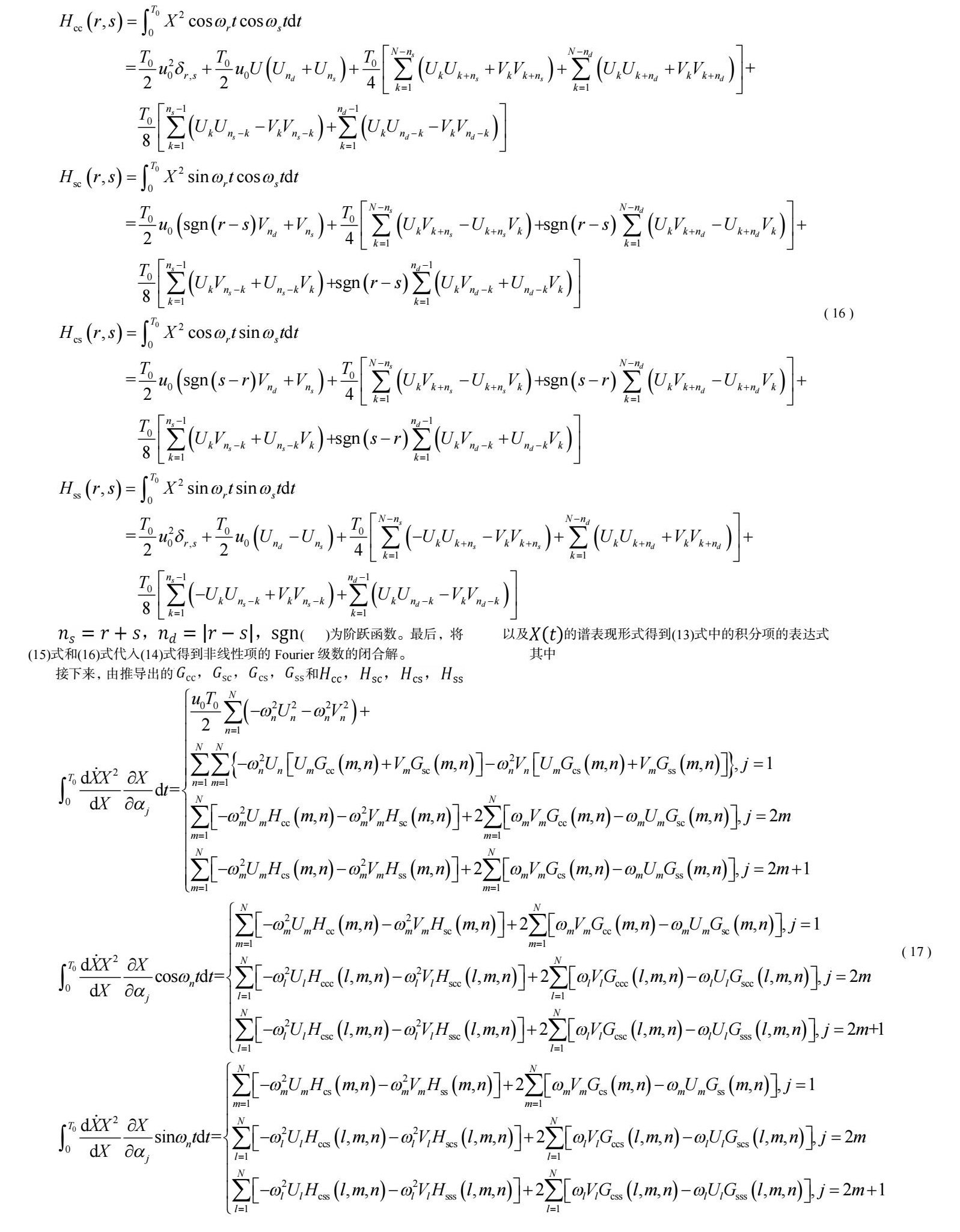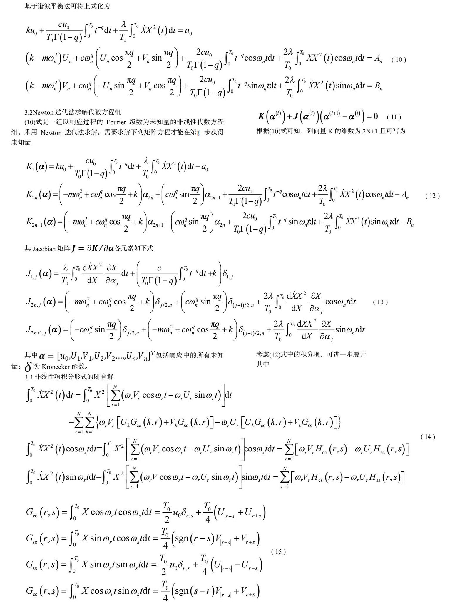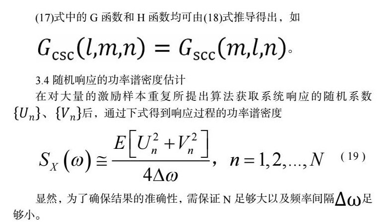 摘要:本文基于Monte Carlo模拟分析框架,推导了宽带随机激励下,分数阶导数阻尼Van der Pol振子响应功率谱密度求解公式。首先,利用随机过程的谱表示方法得到了系统激励过程的Fourier级数,随后利用谐波平衡法将该分数阶导数阻尼Van der Pol振子的运动微分方程转化为一组以系统响应过程的Fourier级数为未知量的代数方程。接着,采用Newton迭代法求解代数方程得到了系统响应过程的Fourier级数。最后,通过响应过程的Fourier级数得到了响应过程功率谱密度。整个过程中可选取合适的激励Fourier系数计算,这极大提高了计算效率。