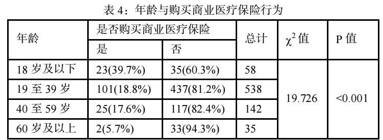 分析发现选择有定期体检这种日常保健行为的仅占28.8%,定期体检相关医疗服务占比较低,定期体检在所调查人群中覆盖面仍然有待提高。在购买商业医疗保险方面,我们发现更容易发生疾病风险的老年群体对于购买商业医疗保险的选择却是最低的,商业医疗保险在农村市场发展仍待提高。