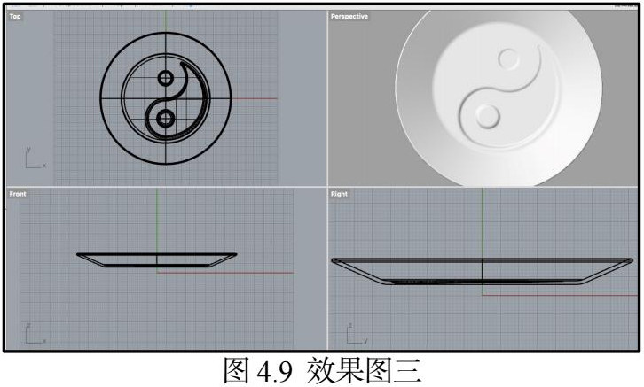味碟融入了八卦太极,通过深度的改变,来达到酱油醋倒进去有八卦形显现的模样。(如图4.9所示)